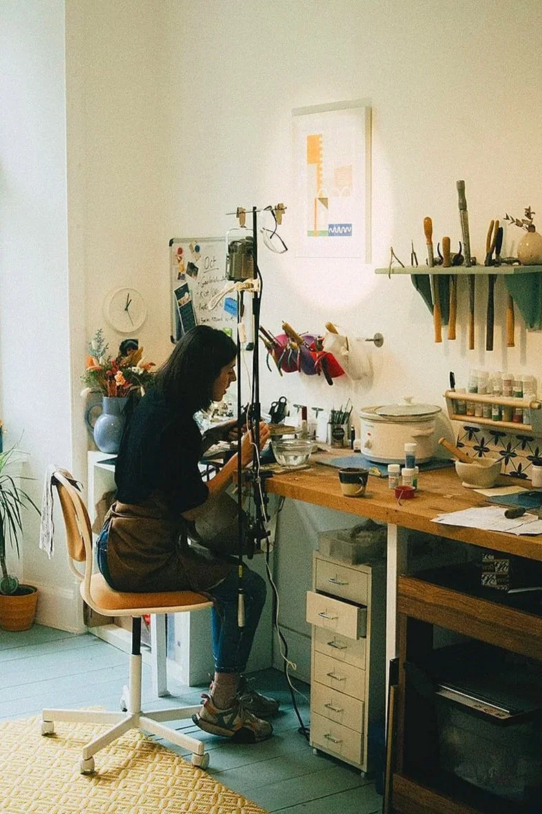 Rebecca in her home studio, Glasgow 2021