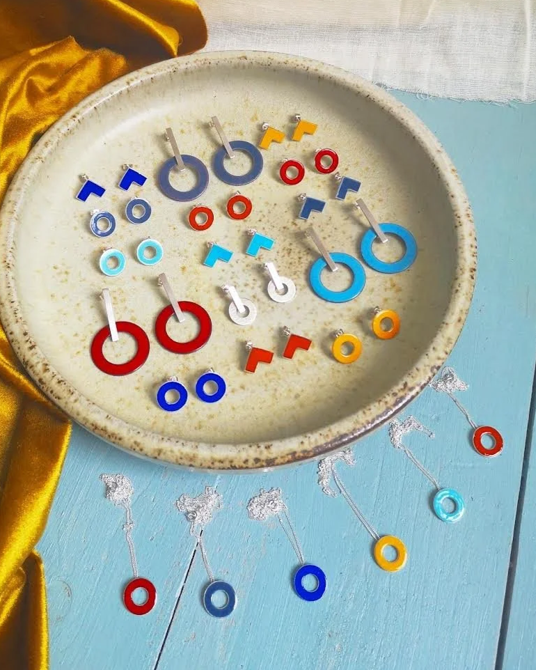 Rebecca marries family sentiment with contemporary, bold and colourful designs from her workshop based in Glasgow.With a passion for colour, Rebecca uses vitreous enamel, powdered glass, in a lot of her designs and enjoys teaching this process too! βI want to bring out your personality when wearing a piece of my jewellery. Jewellery should allow you to express a part of who you are! For me, itβs about bringing that joy to both the wearer and admirer - itβs a pleasure making something completely unique that will hopefully become a cherished piece for years to come!β Read about the story behind Smith & Gibb below.